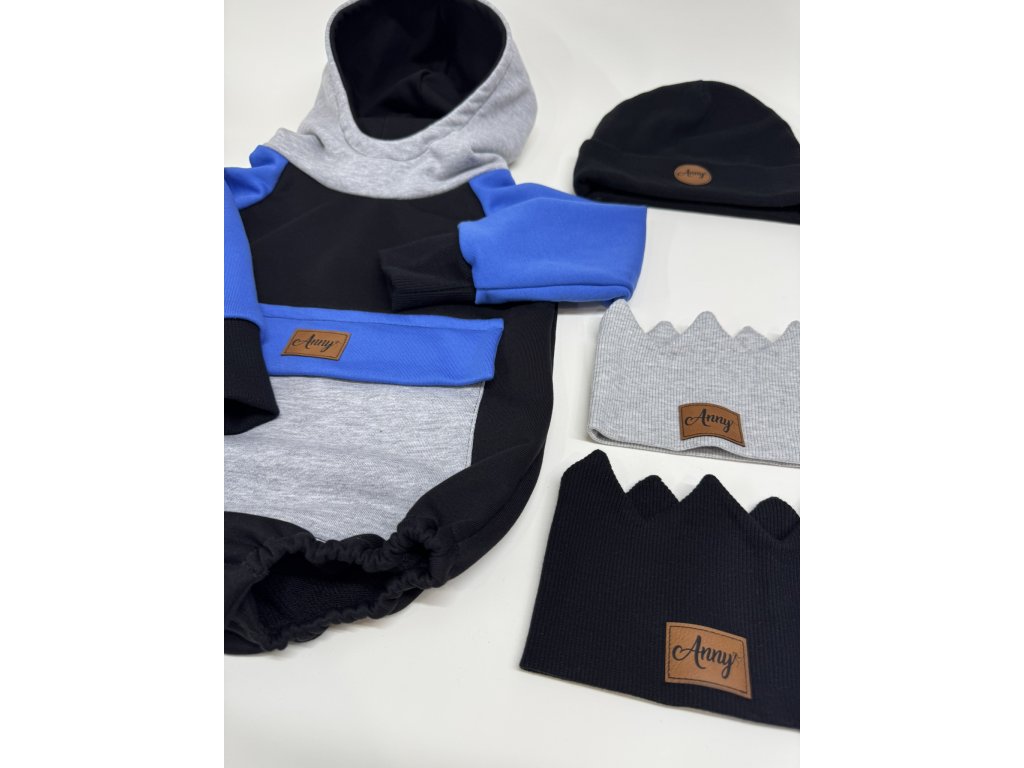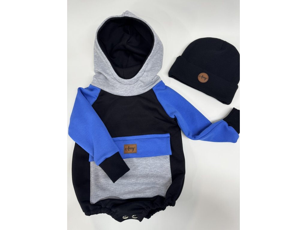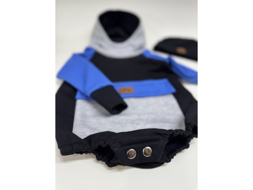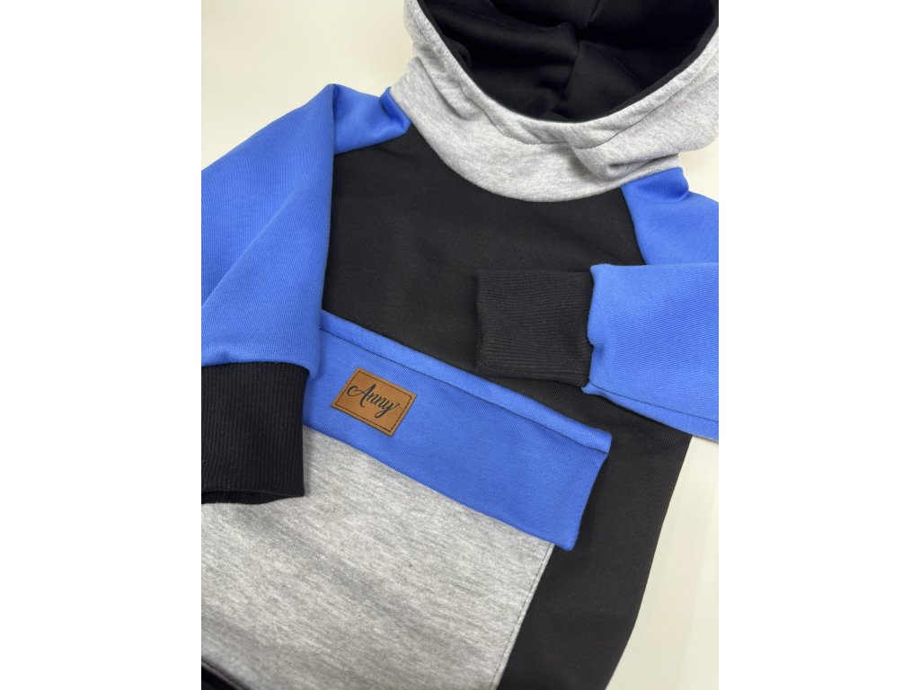 MIKINA "ZÁDA V CAJKU" S KAPSIČKOU- KING BLUE/ŠEDÁ