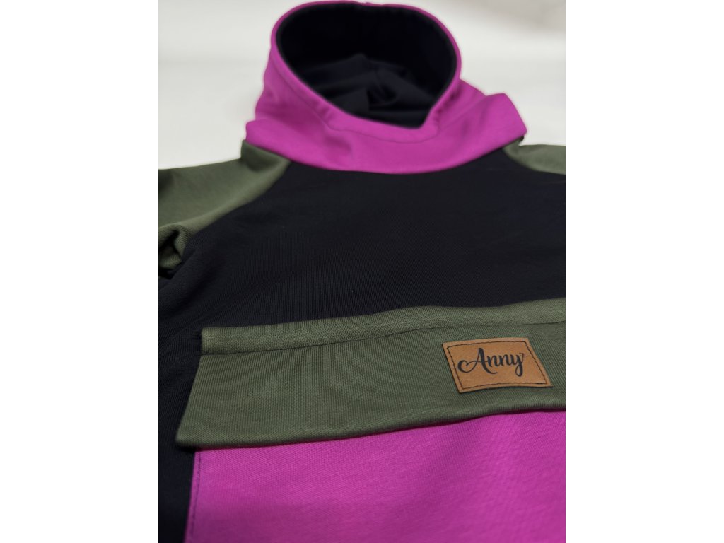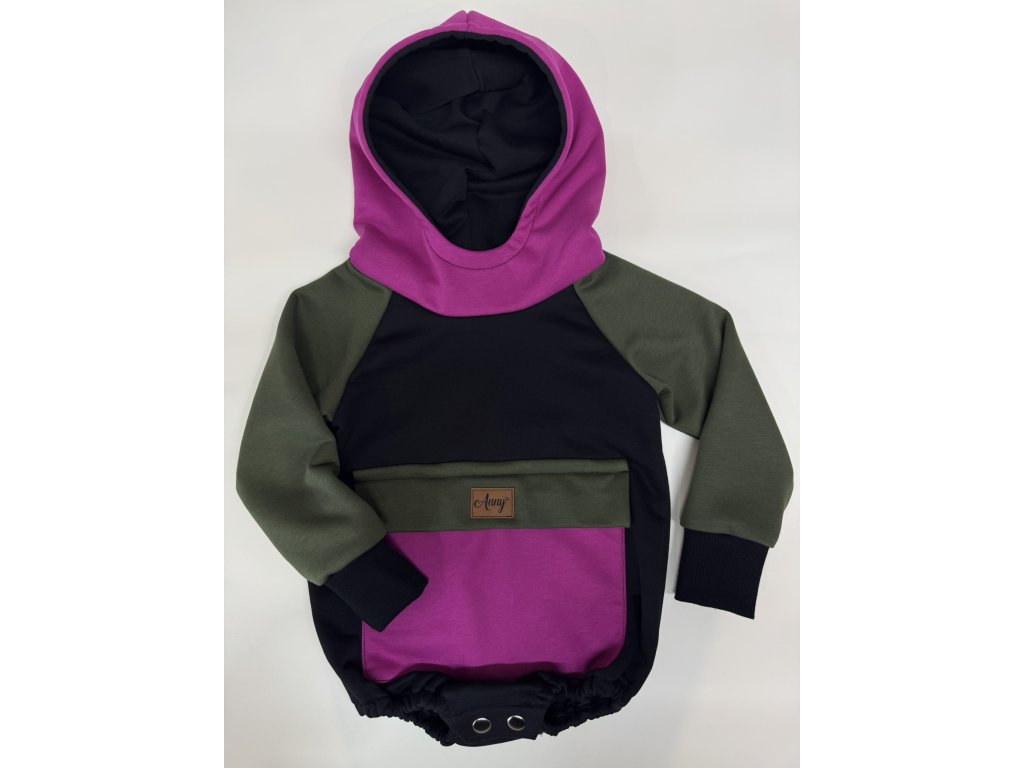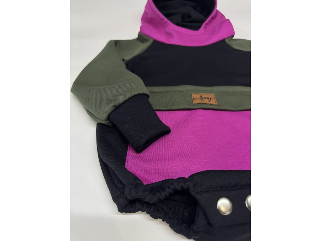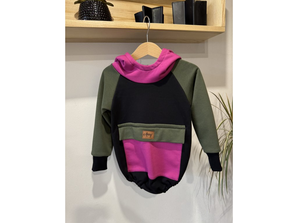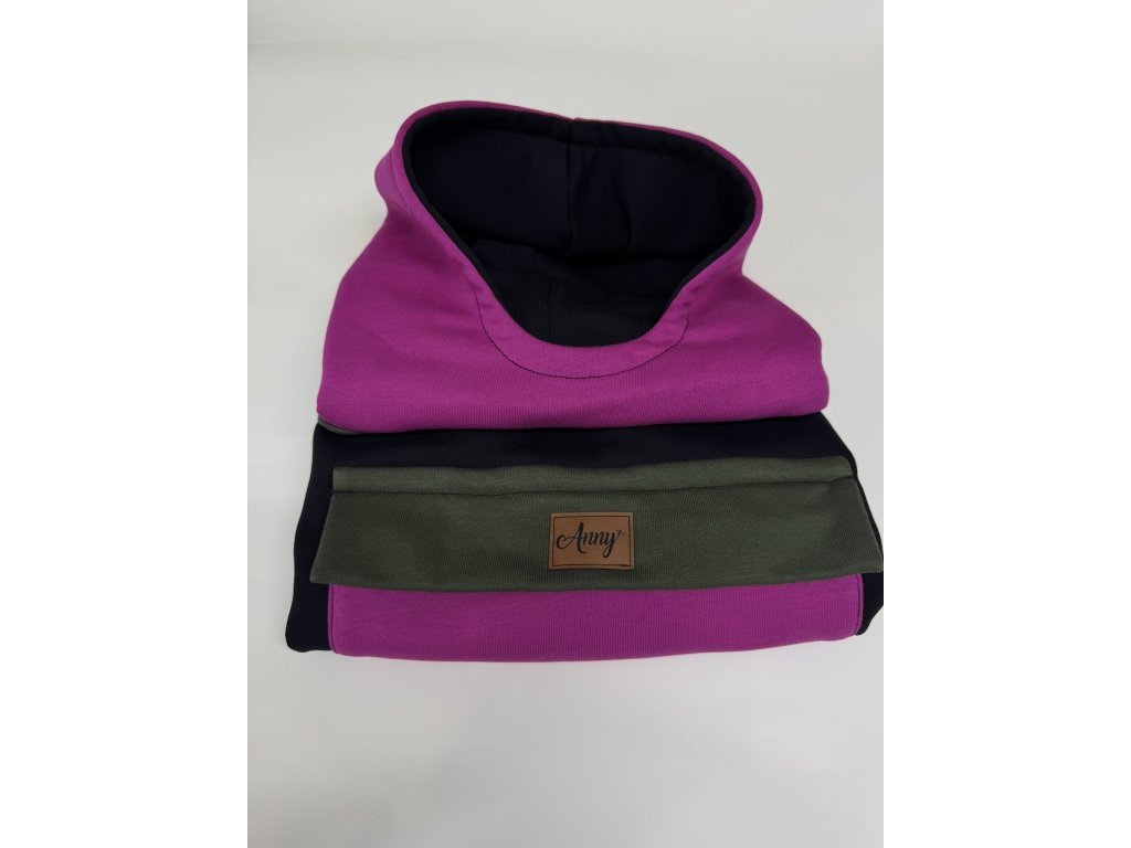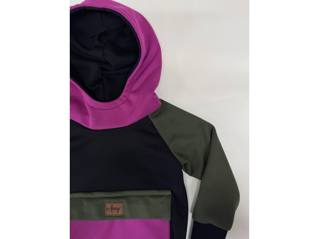 MIKINA "ZÁDA V CAJKU" S KAPSIČKOU- KHAKI/FUCHSIOVÁ