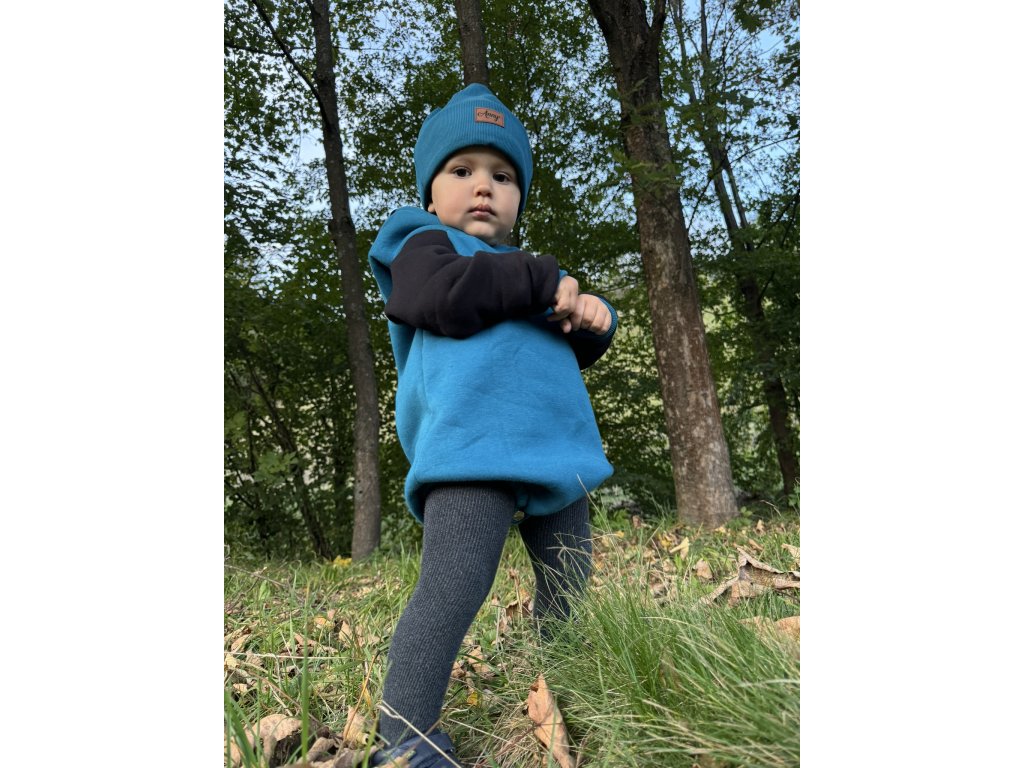 Vysokogramážní teplákovina: Tento materiál je tak příjemný, že vaše dítě si ho bude chtít brát i do postele (ale my doporučujeme, aby zůstalo venku). S touto mikinou si děti užijí venkovní dobrodružství i v chladnějších dnech, a vy se už nebudete muset bát, že je chytí nachlazení.